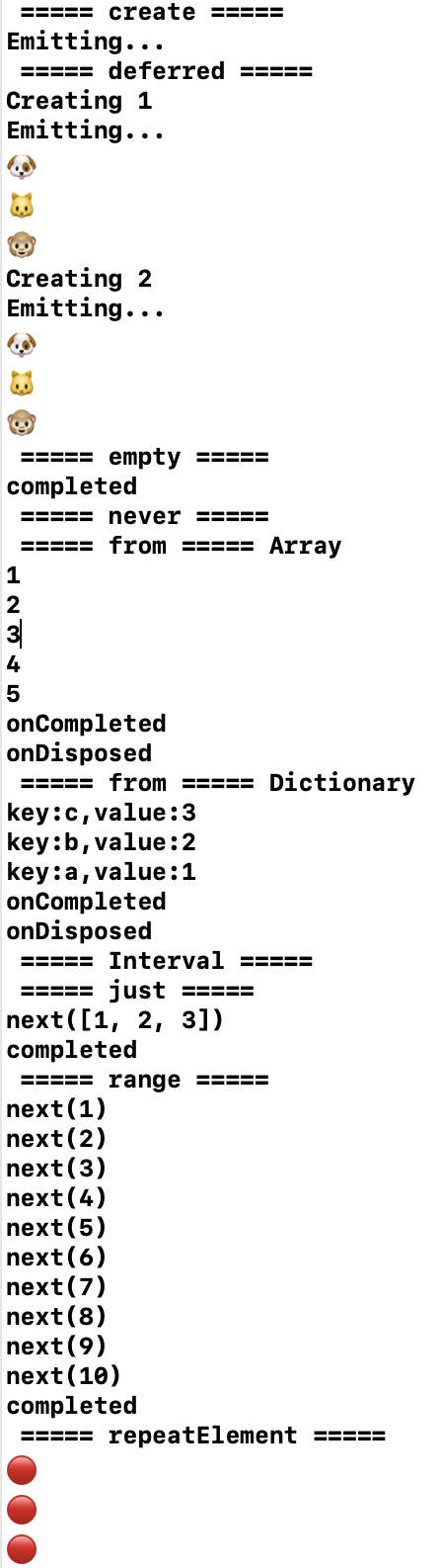 Observable.of("🐶", "🐱", "🐭", "🐹")