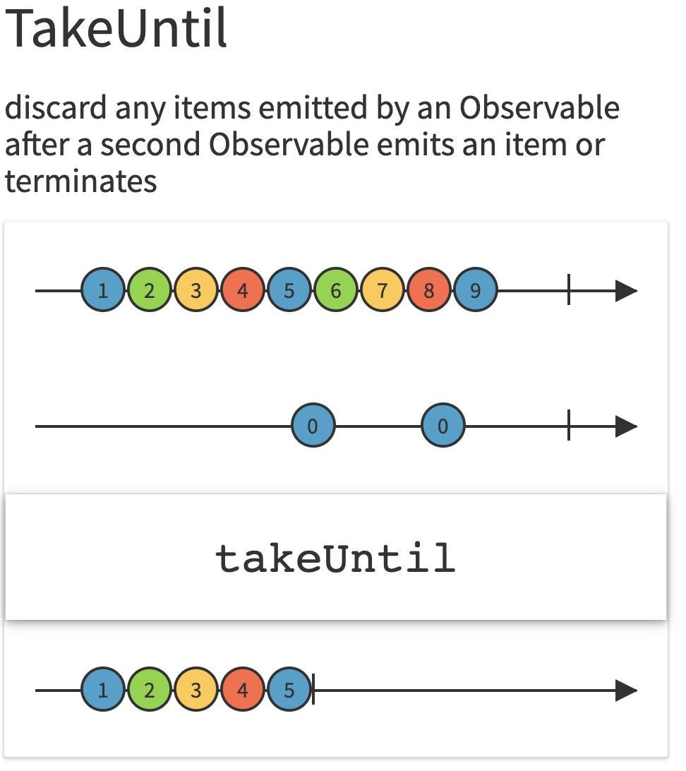 - TakeUntil : 특정 이벤트가 발생하기 전까지만 방출