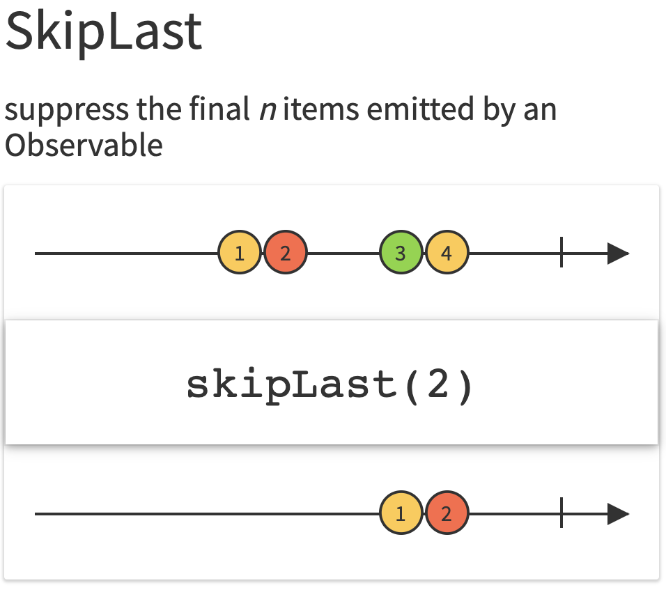 - skipLast : 앞에서부터 n개를 스킵하는데, 스킵한 값이 다음 밸류가 들어오면 이게 맞게 보여진다.