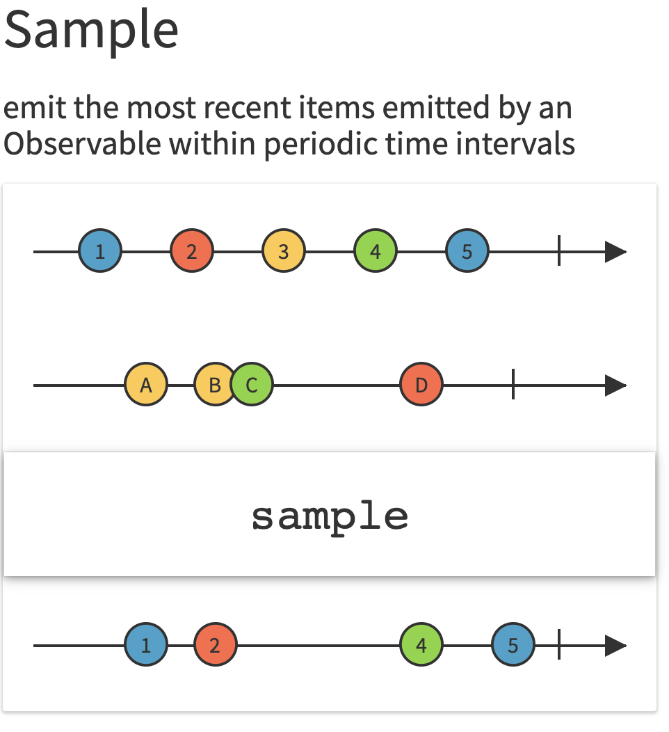 결과값을 보면 쉽게 이해가 가지? data 서브젝트가 아무리 들어와도 trigger이벤트가 발생할 때, trigger이벤트 사이의 값중에서 가장 나중의 data서브젝트에 있는 값을 방출한다.