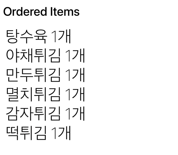 - 깃헙에 있는 코드를 그냥 쓰는데, 아이템을 선택시 orderList로 들어갈 때 누락되는 버그 확인
