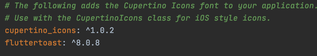 Flutter에서는 fluttertoast 패키지를 설치해야 사용할 수 있음.
