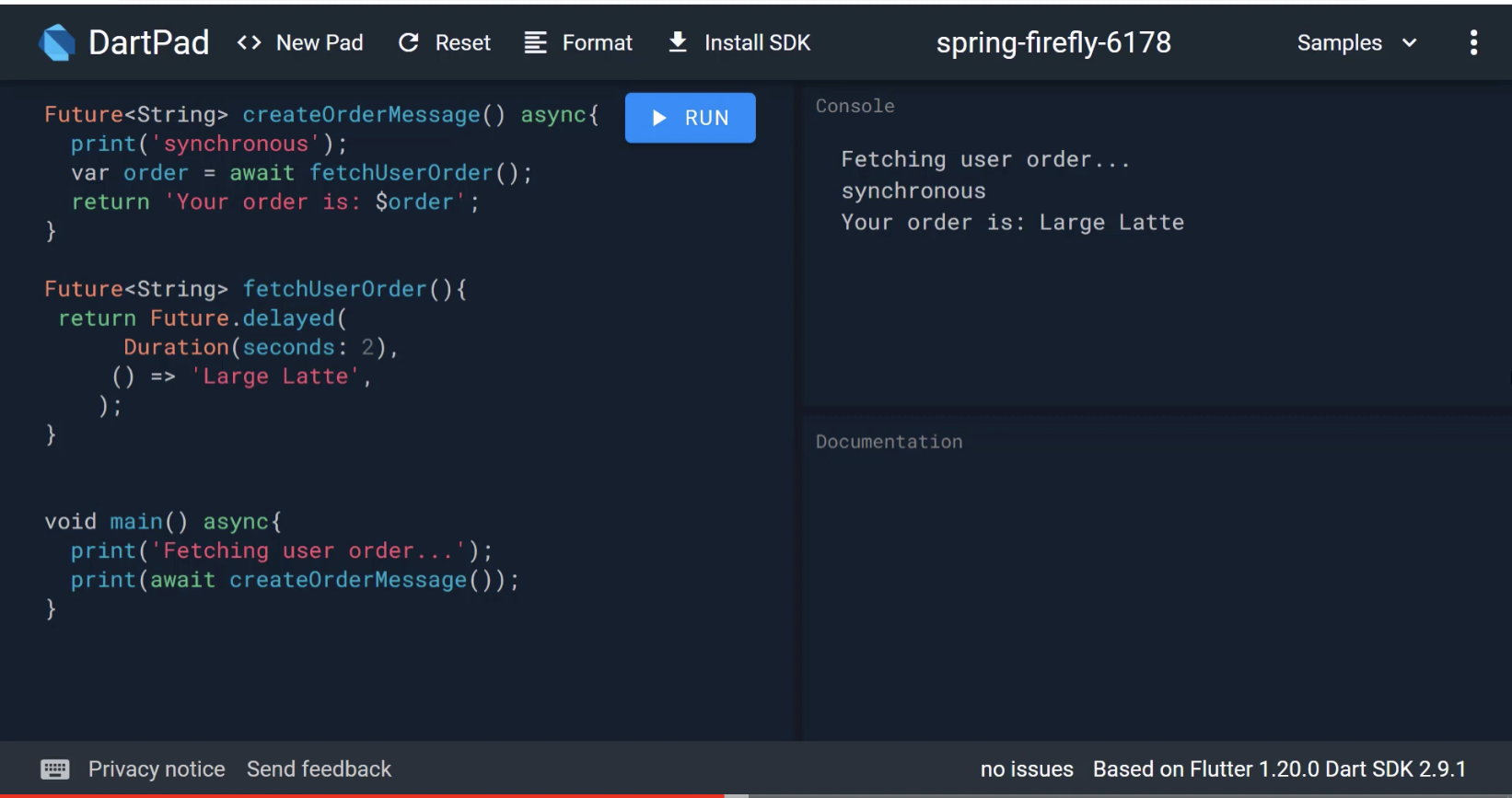 - await 키워드 등장 시 해당 Future 완료까지 대기