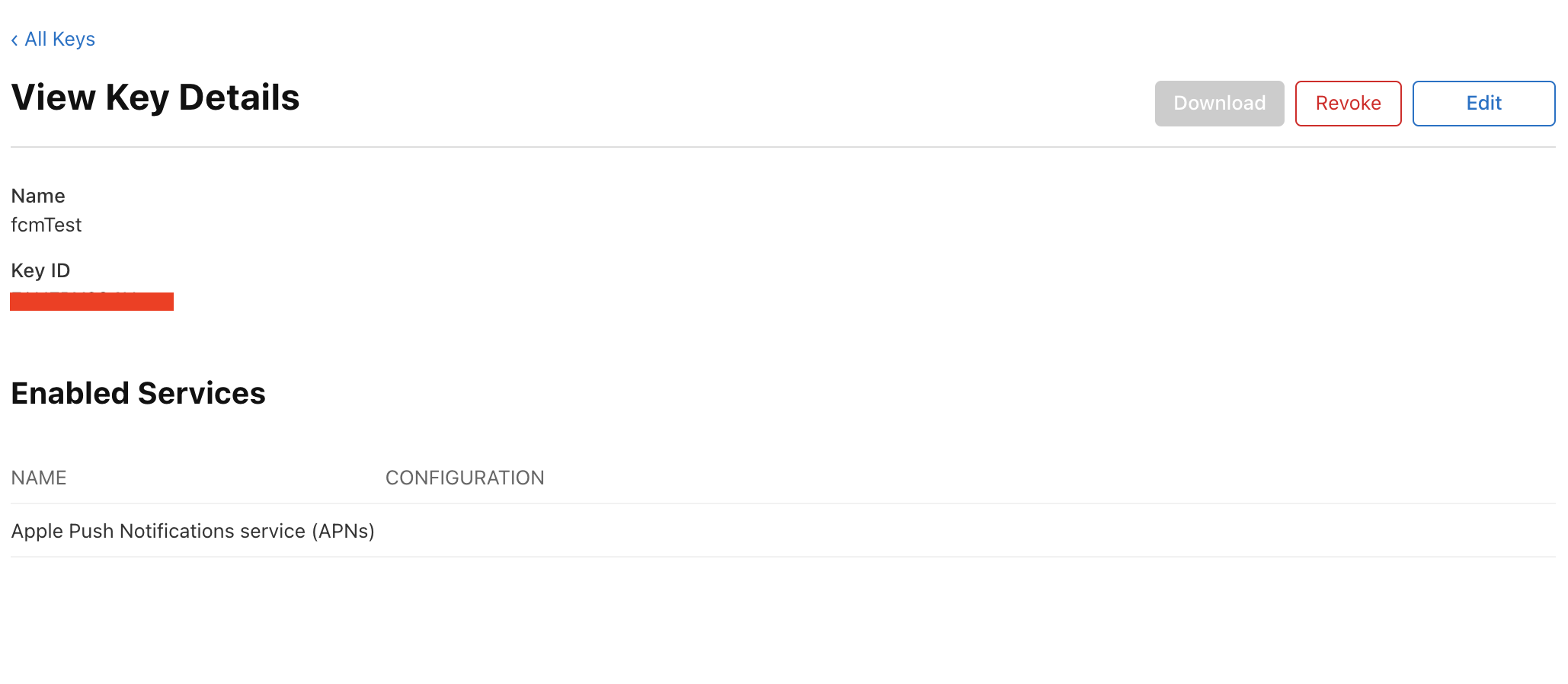해당 과정은 매우 간단하며, 생성하기 누르면 .p8 파일을 드래그해서 올려두고 keys의 key ID를 입력하면 끝
