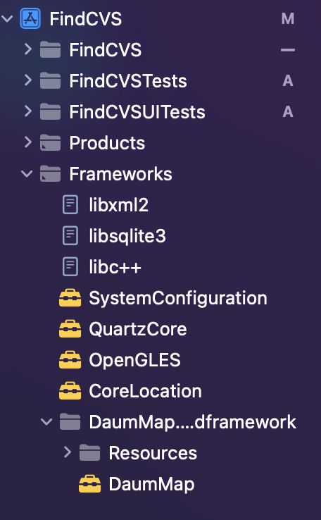 근데 이거 Xcode 열어서 다시 그 파일을 저기 Framework라는 곳에 넣어두어야 함.