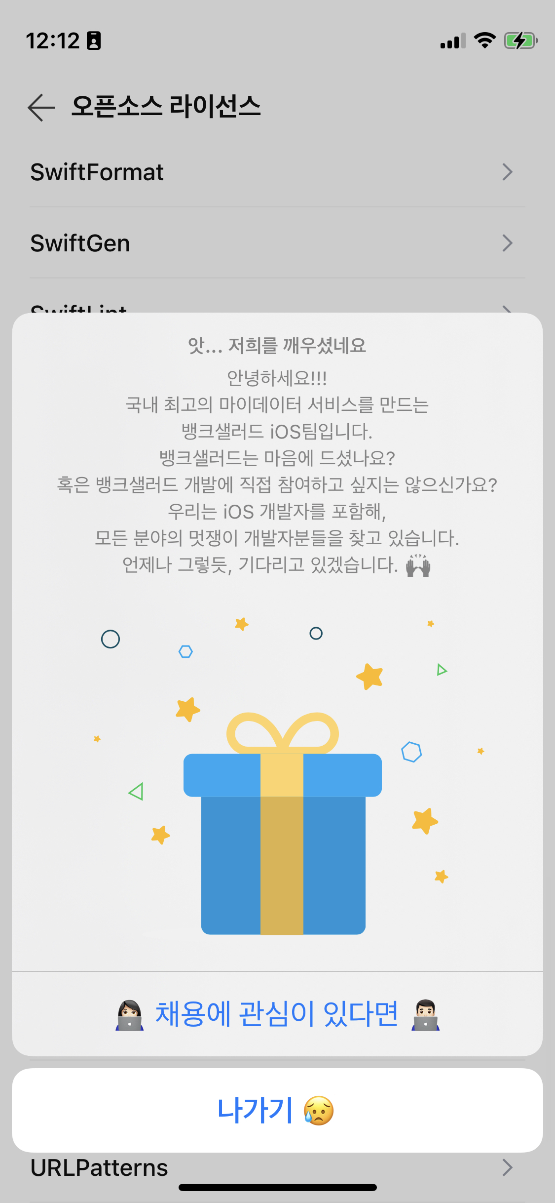 iOS 오픈소스 라이선스 페이지 (뱅크샐러드)