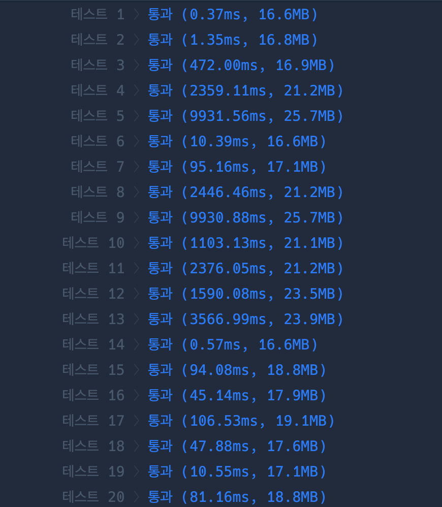 이렇게 작성하니까 통과는 했는데, 시간을 한번 보자면