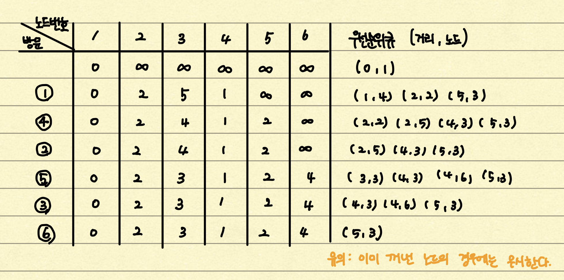 다익스트라 알고리즘 : 한 지점에서 각각의 특정 지점까지의 최단 경로 - 그리디에 속함