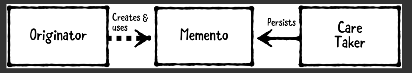 메멘토 패턴은 일반적으로 3개지 개념으로 구성됨