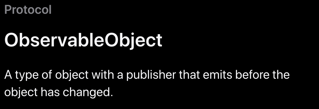 - ObservableObejct는 Protocol이며, Combine 프레임워크의 일부