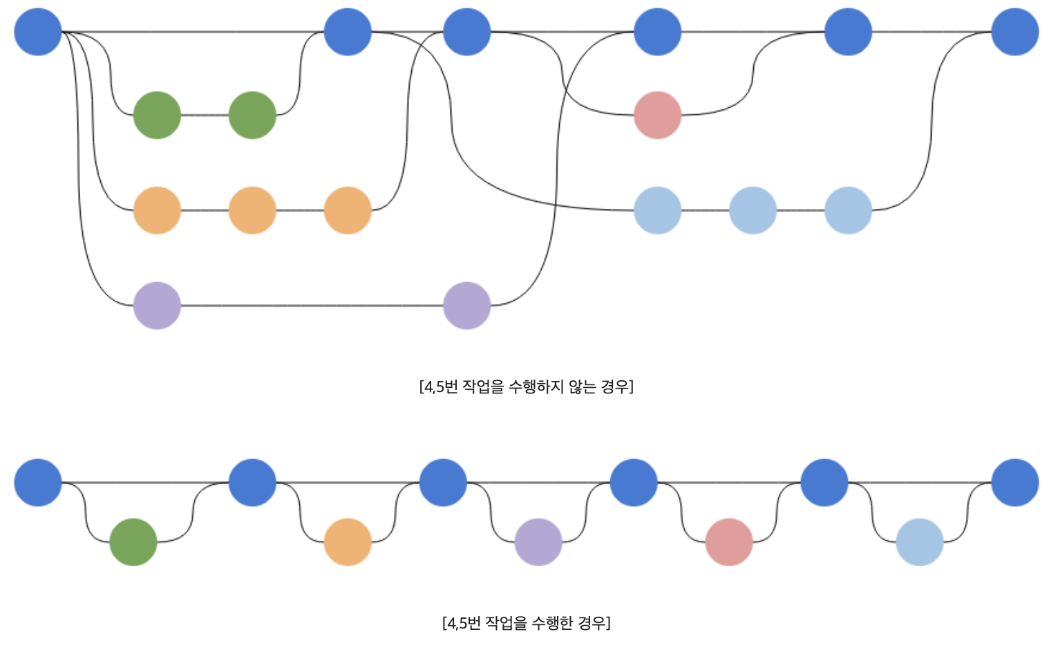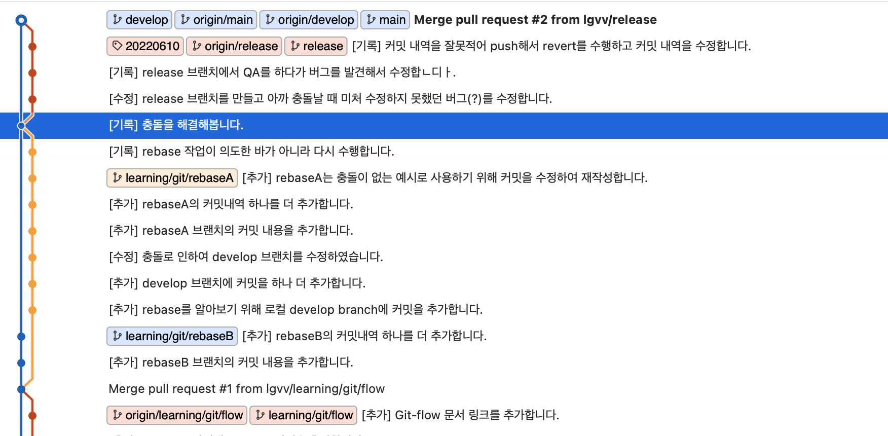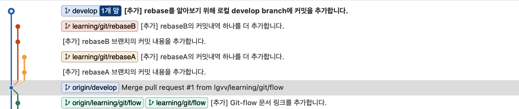 - 리베이스를 위해 일부로 플로우를 이렇게 만듦.