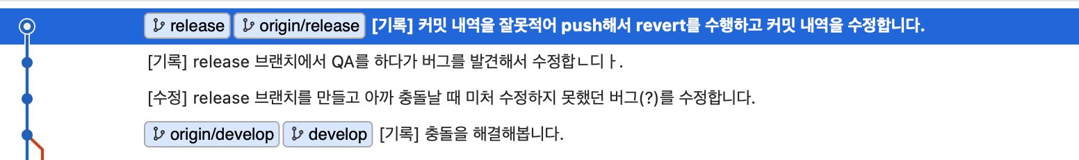 - 원격에 푸시했는데, 커밋에 오타가 있어서 revert후 다시 push