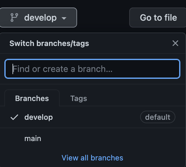 - develop 브랜치는 main 브랜치 안에서 시작한 브랜치