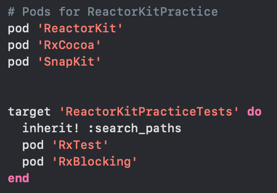 RxTest는 반드시 CocoaPod에서 Tests 쪽으로 타겟을 잡아줘야 빌드 오류 없이 편안하게 진행 가능함.