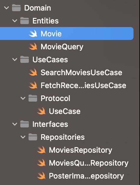 - Domain 레이어에는 Entity와 Use Cases에 대한 부분이 위치