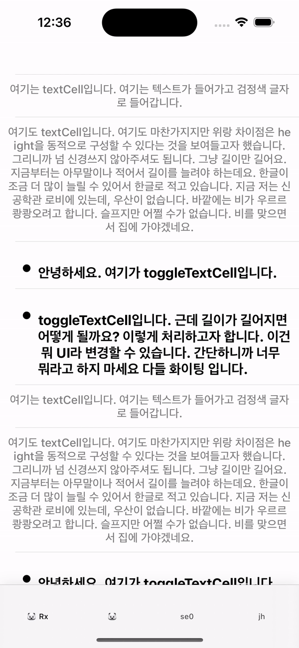 - RxTableViewSectionedAnimatedDataSource 사용시 애니메이션이 적용되는지 확인하기 위해 itemSelect시 첫번째 섹션 삭제