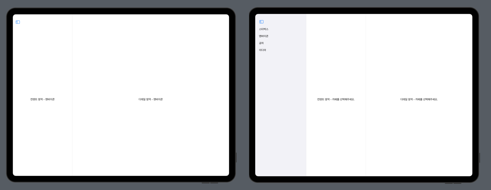 그렇다면 NavigationSplitView에서 위에 있는 사이드바 > 컨텐트 > 디테일로 위치하기에 그 2개의 스택은 언제나