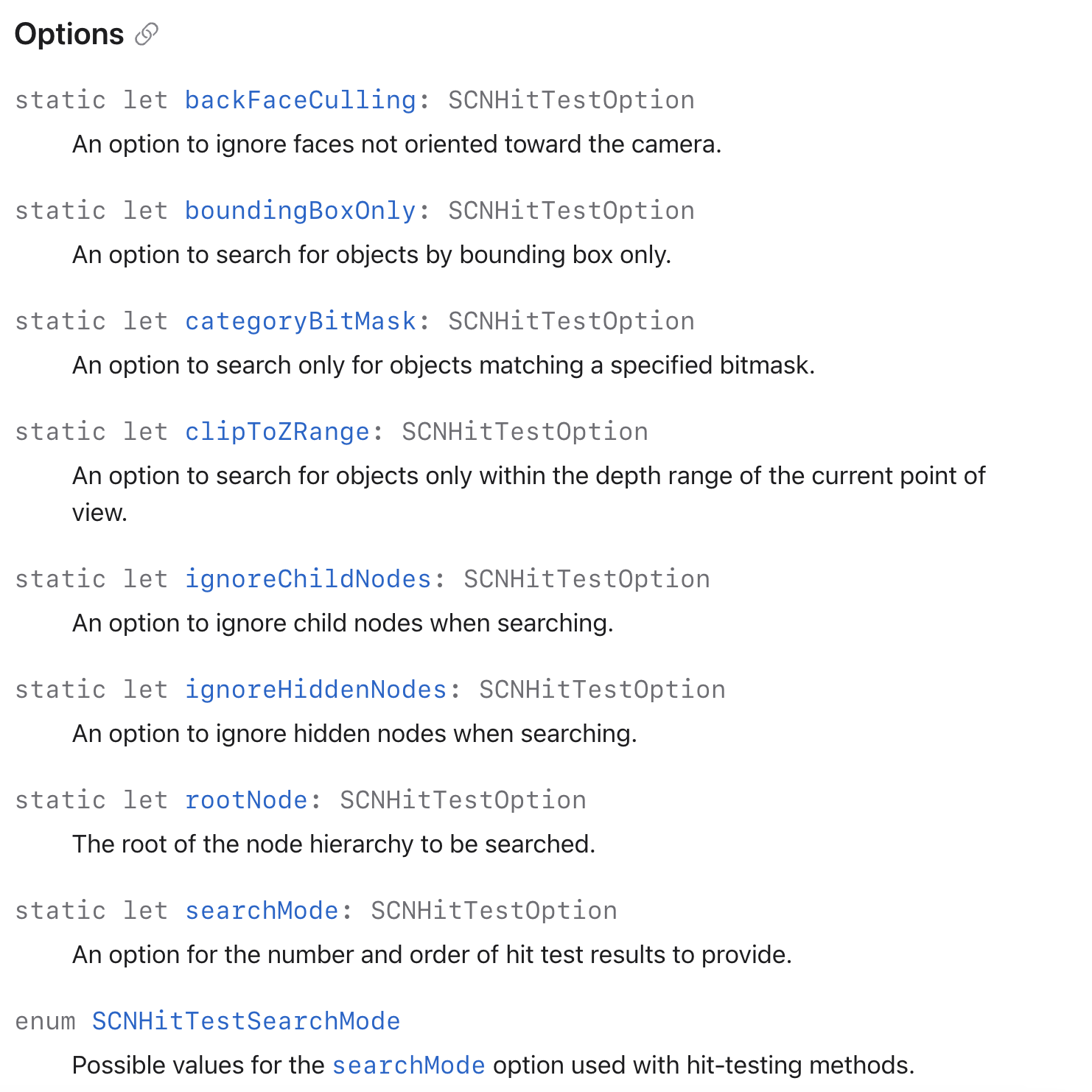 https://developer.apple.com/documentation/scenekit/scnhittestoption