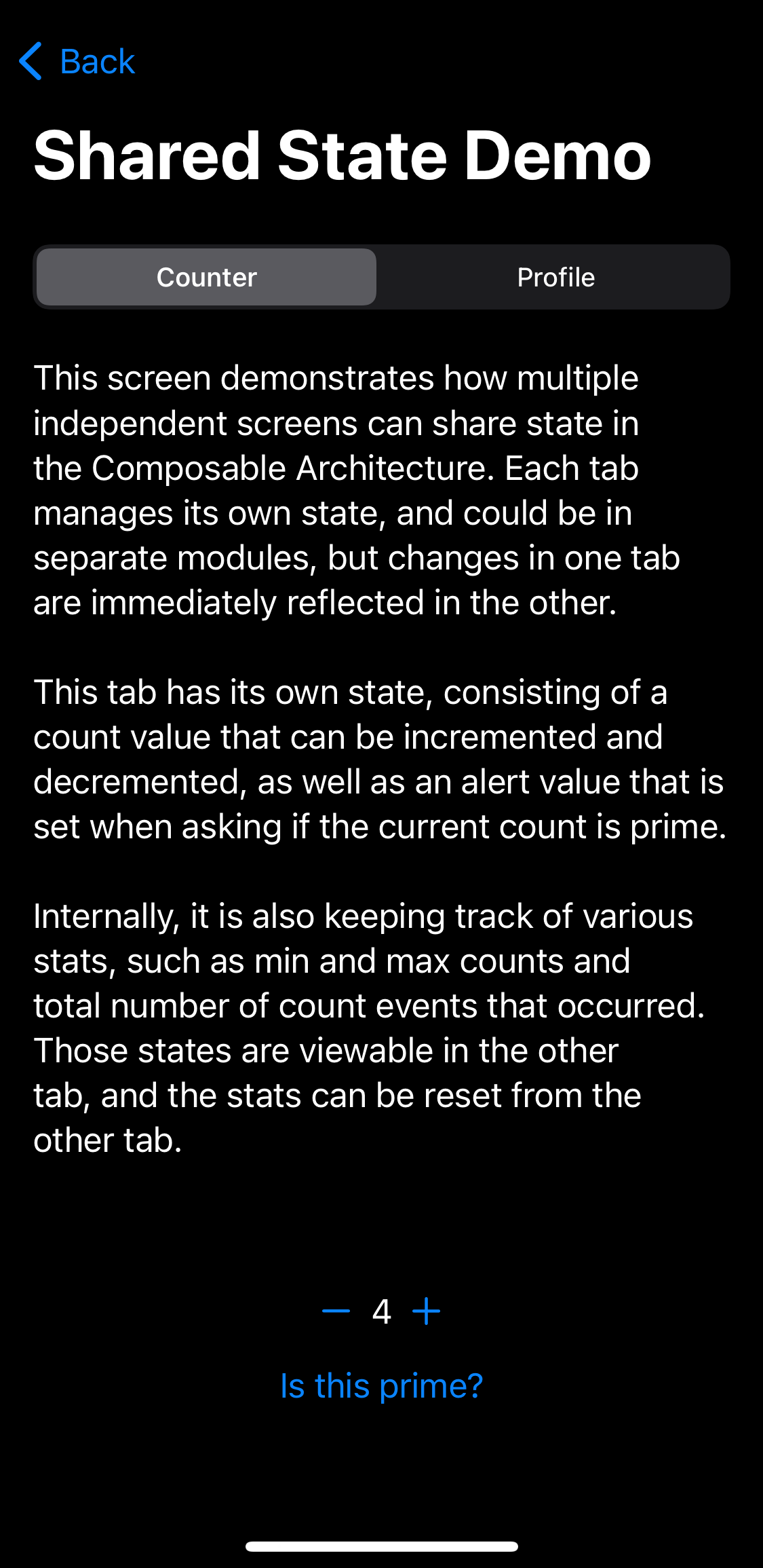 /// The Profile.State can be derived from the Counter.State by getting and setting the parts it