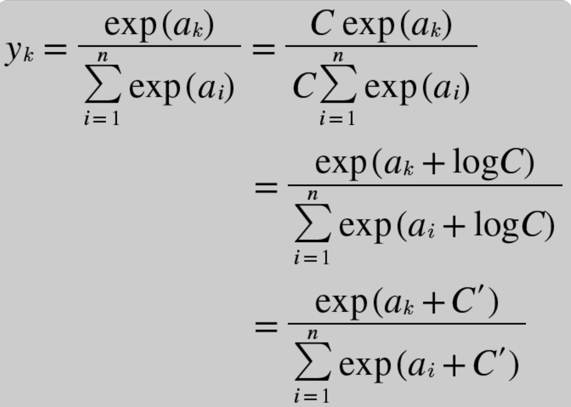 exp_a = np.exp(a - c) # 오버플로 대책