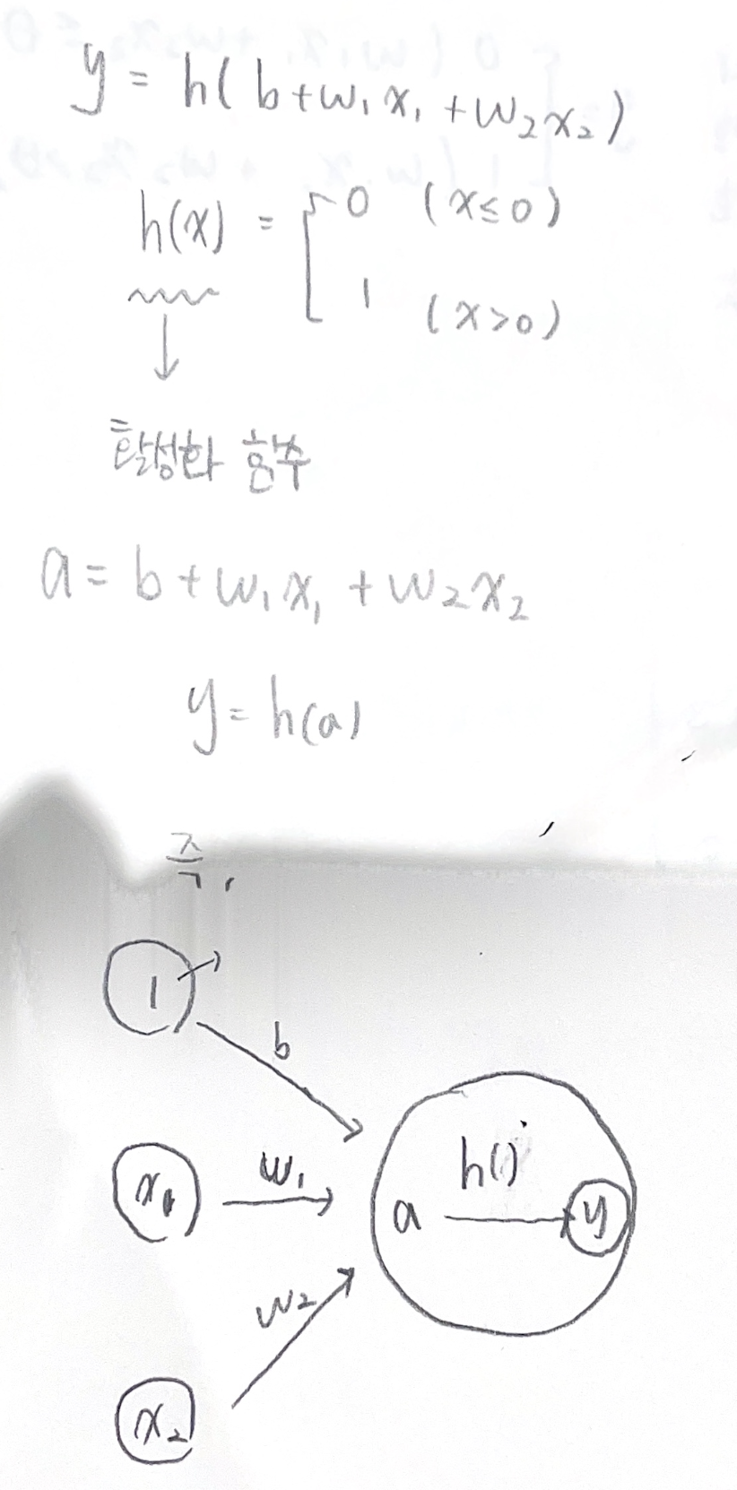 이를 편향을 명시하여 수식으로 표현하자면 아래와 같음.