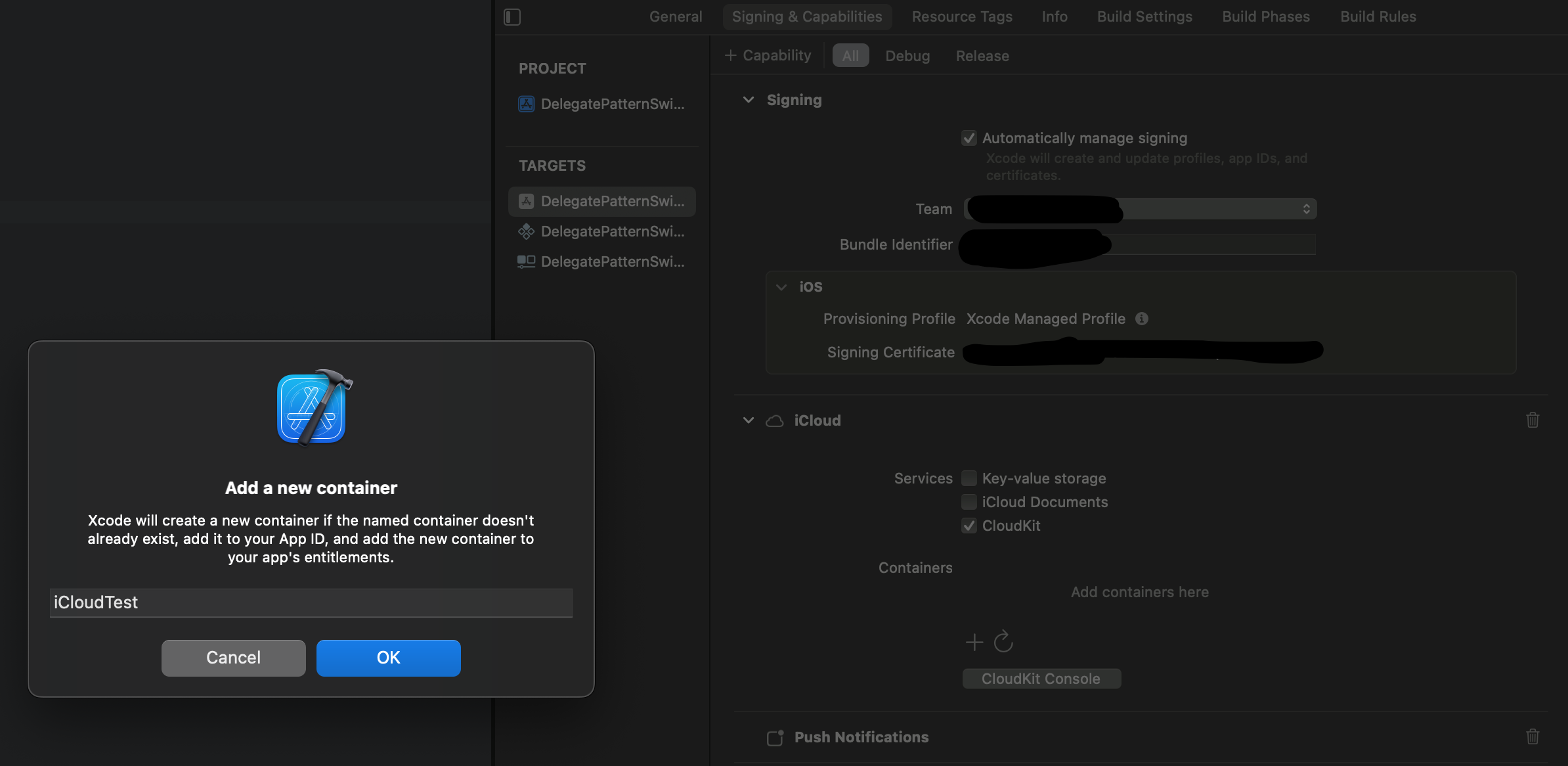 1. XCode에서 iCloud를 사용할 수 있도록 추가.