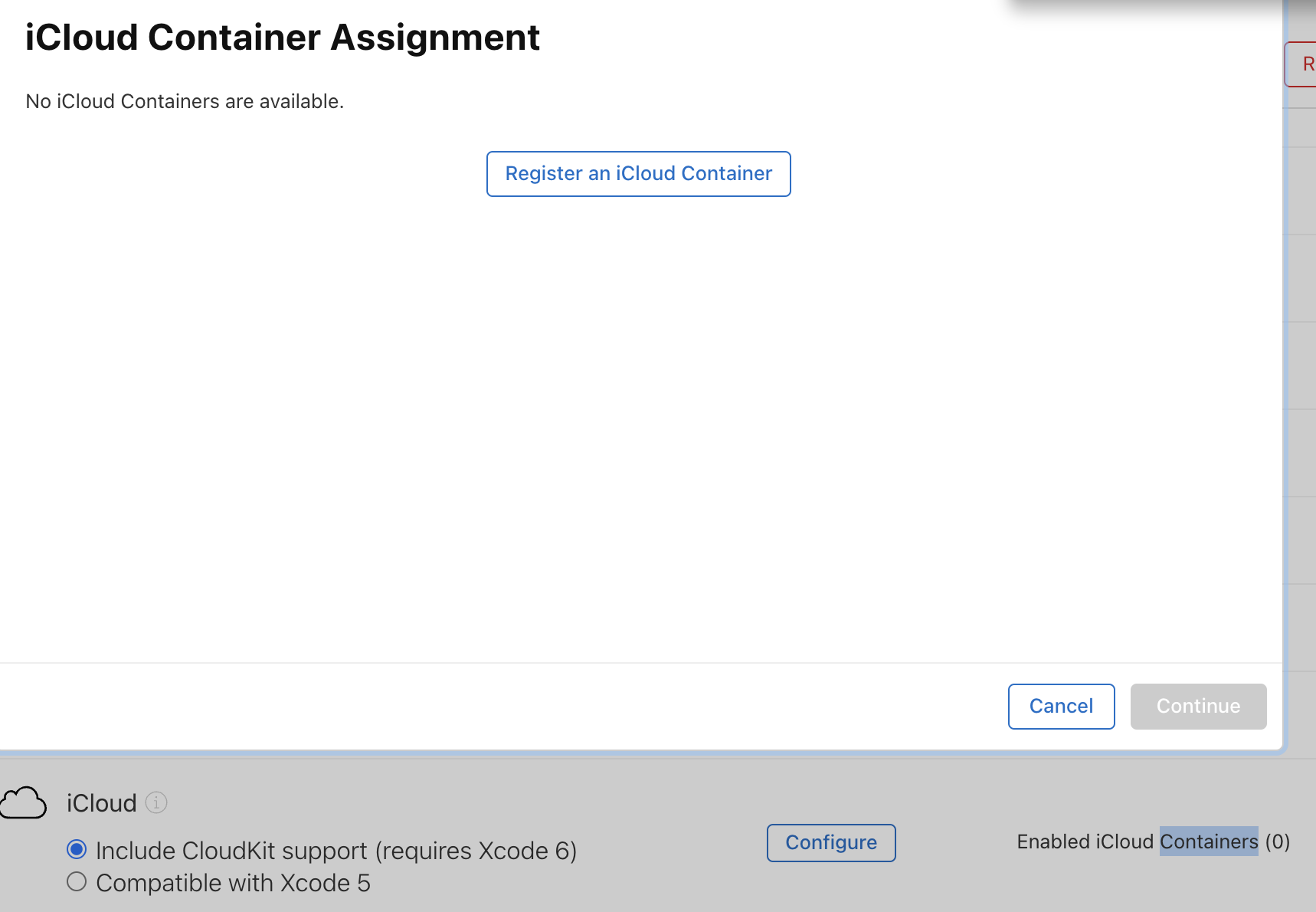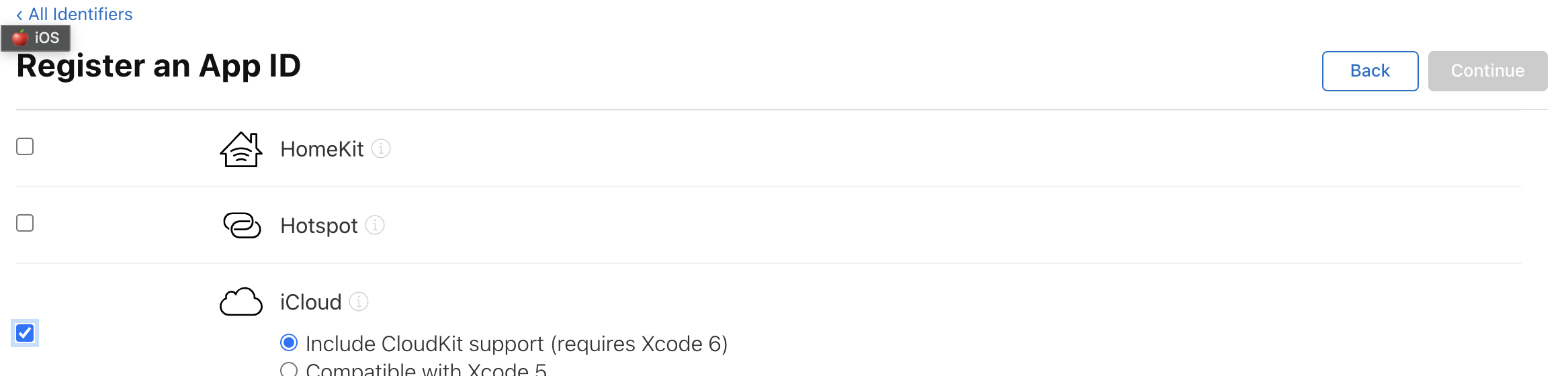 2. Apple Developer 사이트에서 해당하는 앱에 App Regiser에서 iCloud 체크
