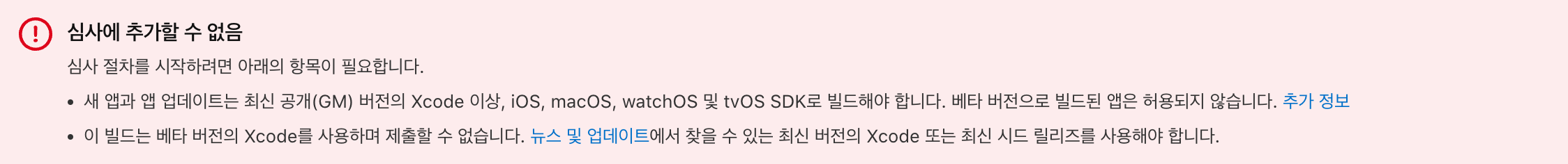 - macOS 버전 올리면 현 시각 기준으로 Beta 밖에 Xcode가 없어서 배포가 안되는 상태.