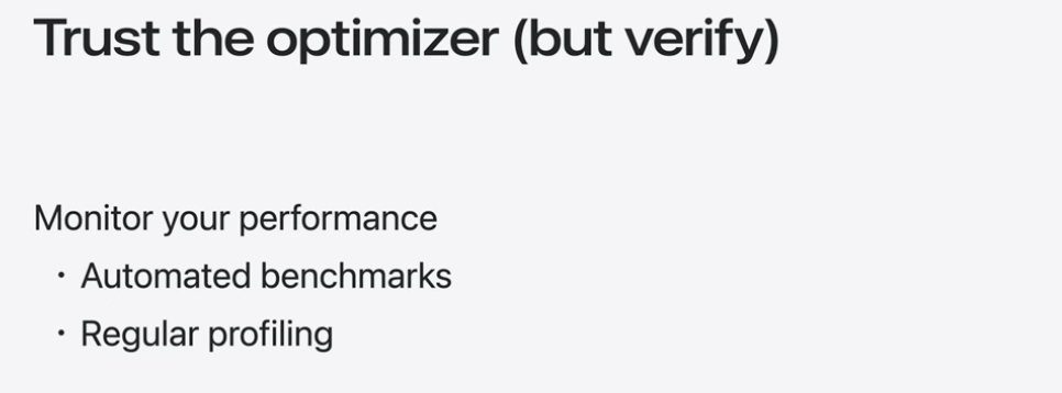 이렇게 할 경우에는 성능 측정 도구를 이용해 핫스팟(특정 지점)을 찾는다면, 그 부분을 개발 프로세스의 일부로 해당 측정을 자동화 할 것
