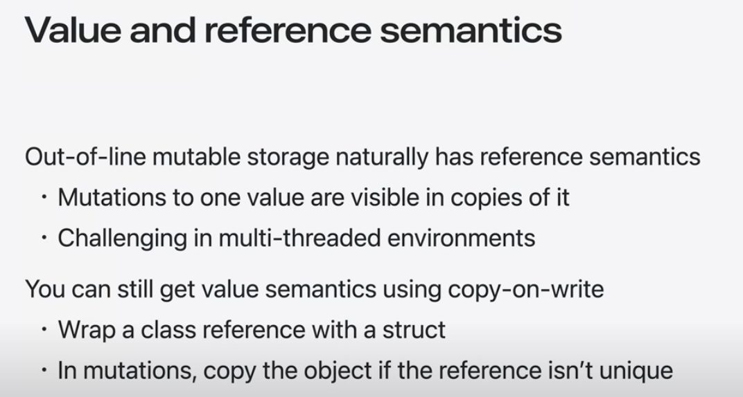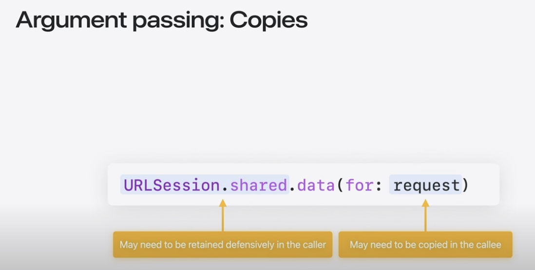 하지만, Swift에서는 값을 빌려주는 대신 방어적으로 복사해야 하는 상황이 있음.