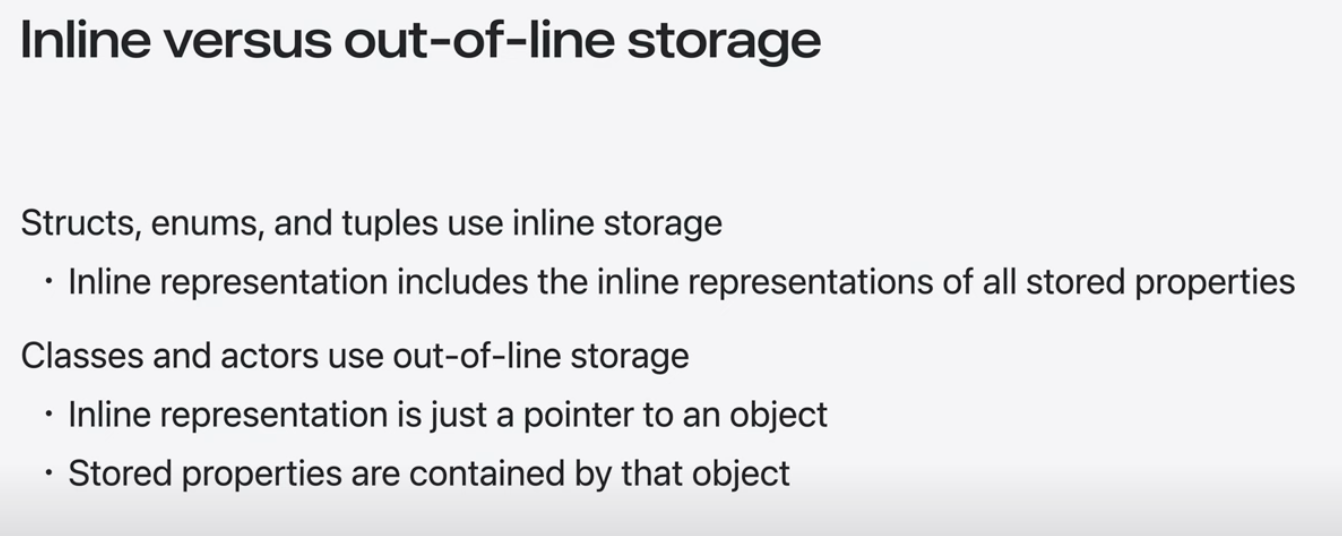 즉, 모든 구조체 내부에 속한 모든 저장된 속성에 대한 자체 저장소가 필요함.