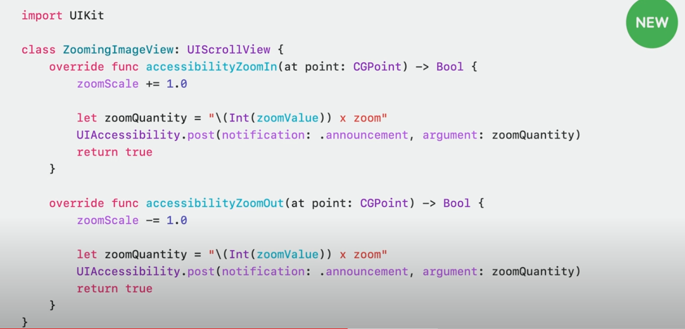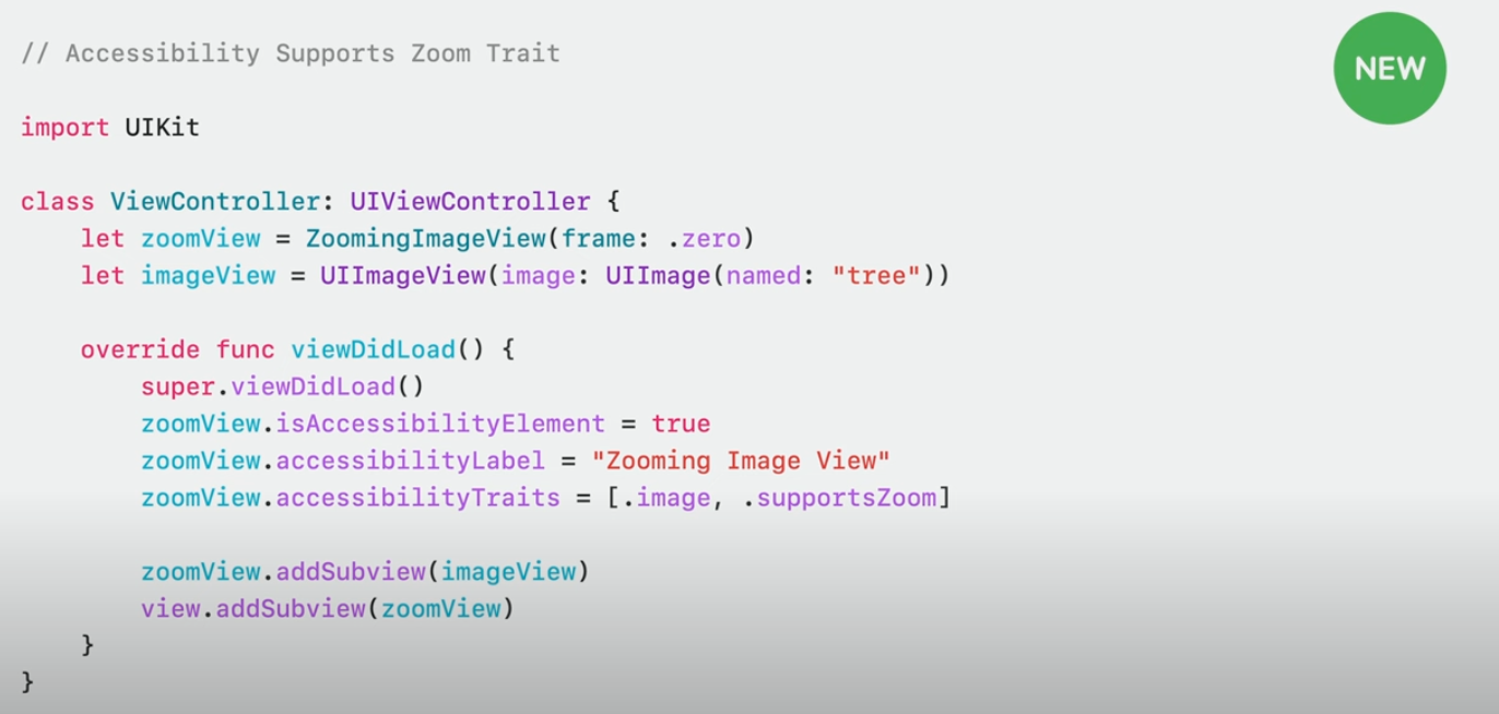 UIKit에서는 accessibilityTrait에서 image와 supportsZoom을 추가하고 오버라이드 한 함수를 구현