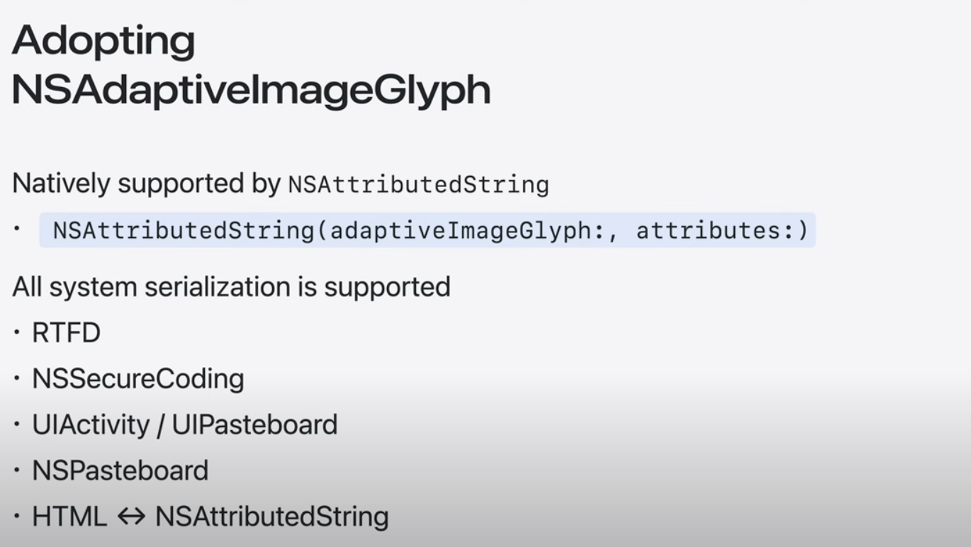 모든 시스템 직렬화 프레임워크가 기본적으로 NSAdaptivelmageGlyph를 지원하도록 업데이트 되었기 때문에 잘 작동함.