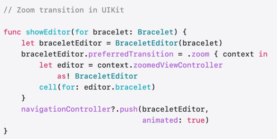 UIKit에서도 화면전환에서 zooming을 더 손쉽게 구현할 수 있음.