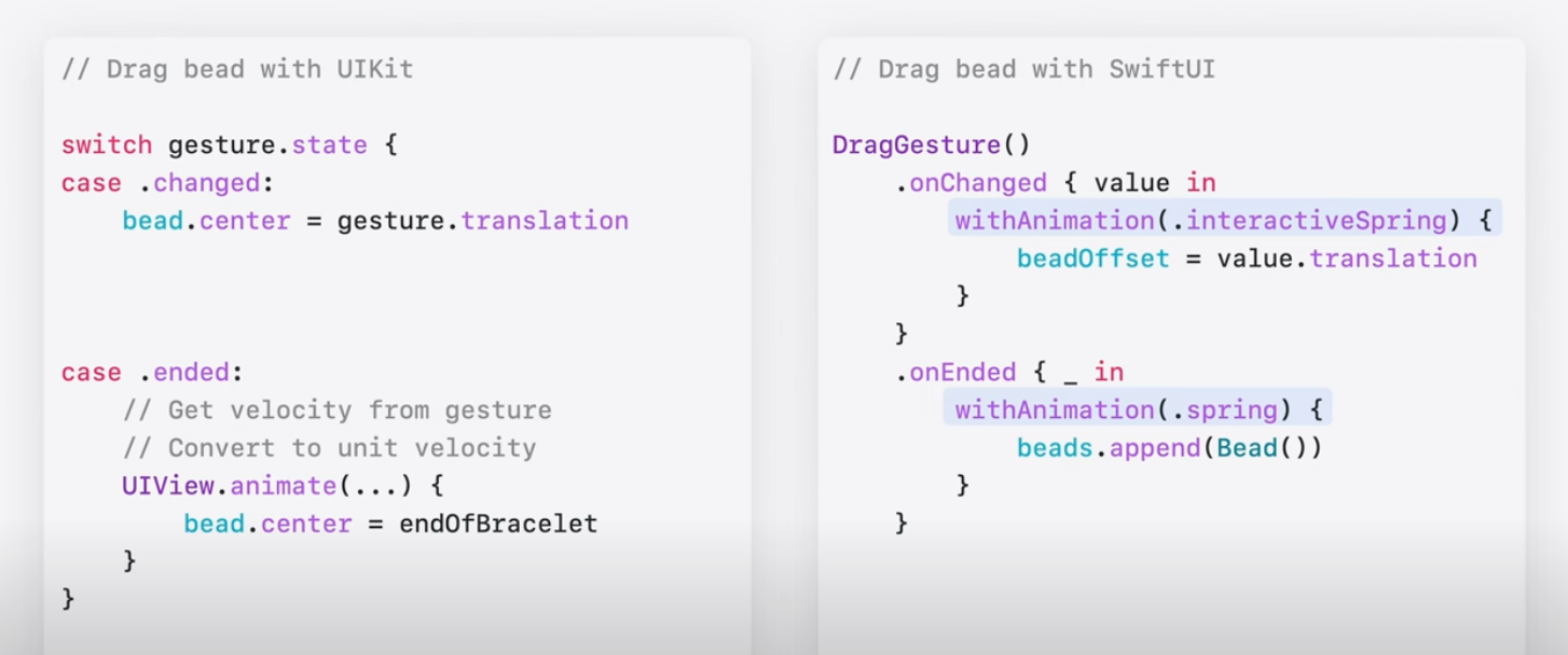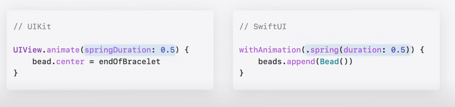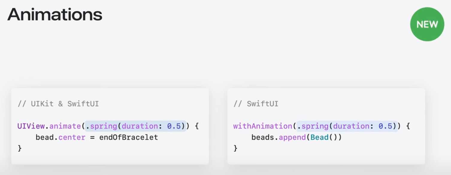 기존에는 UIKit과 SwiftUI에서 서로 다른 애니메이션 코드 형태로 작성