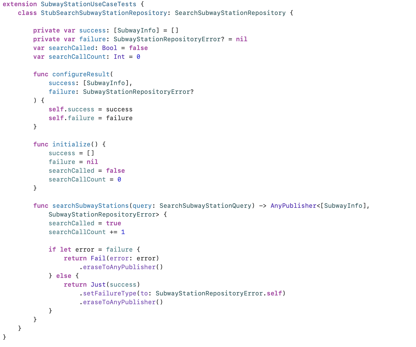 - SearchSubwayUseCase 테스트를 위한 Stub 객체 만들기
