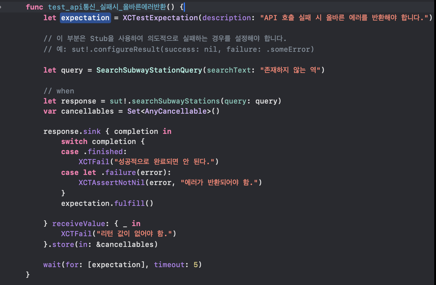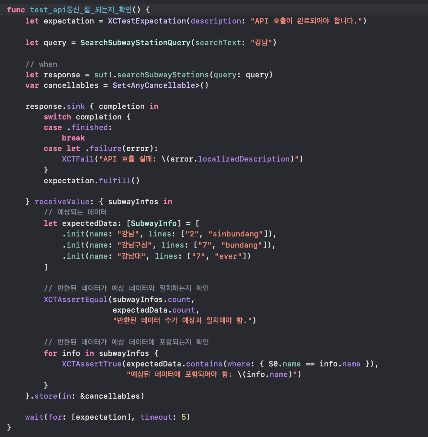- SearchSubwayUseCaseTests 실패 후 로직 보완