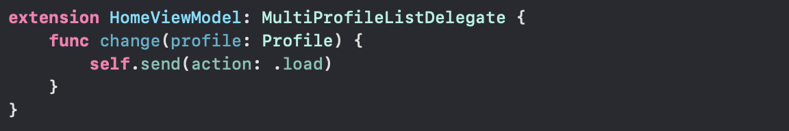 홈 화면에서 프로필 리스트가 있는 네비게이션 방식으로 화면을 전환하고, 해당 화면에서 프로필을 전환하고 pop 혹은 dismiss로 홈 화면으로 돌아왔을 때, 프로필이 전환되어야 함.