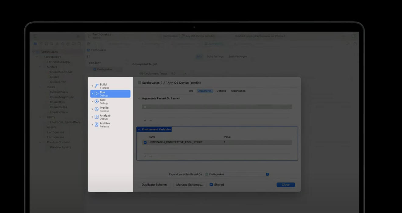 코브 베이스에서 이러한 안전하지 않은 기본 요소의 사용을 식별해 내는데, 도움이 되도록 `LIBDISPATCH_COOPERATIVE_POOL_STRICT=1` 환경 변수를 사용해 앱을 테스트하는 것이 좋음.