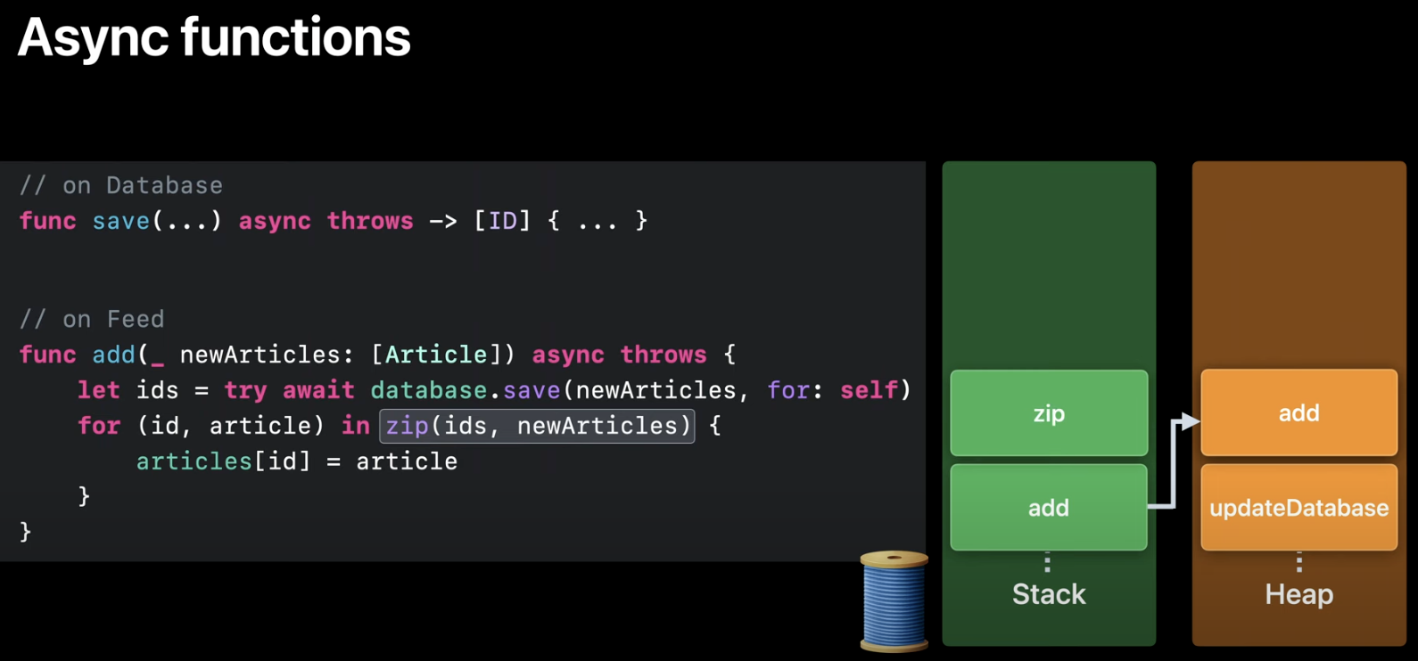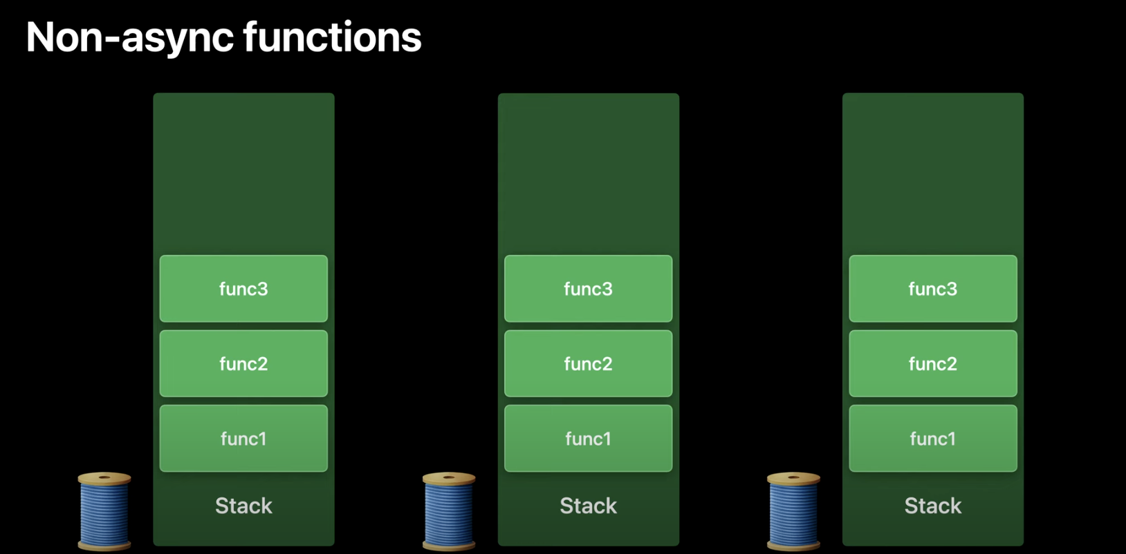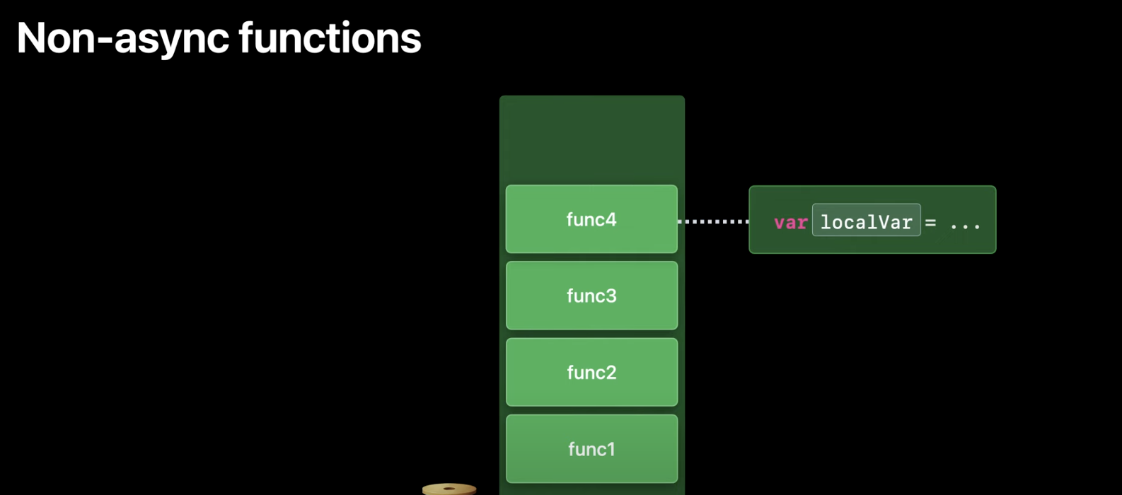 Swift는 OS 스택을 계속 사용하므로 비동기 및 비동기 Swift 코드 모두 C와 obj-c 모두 효율적으로 호출할 수 있음.