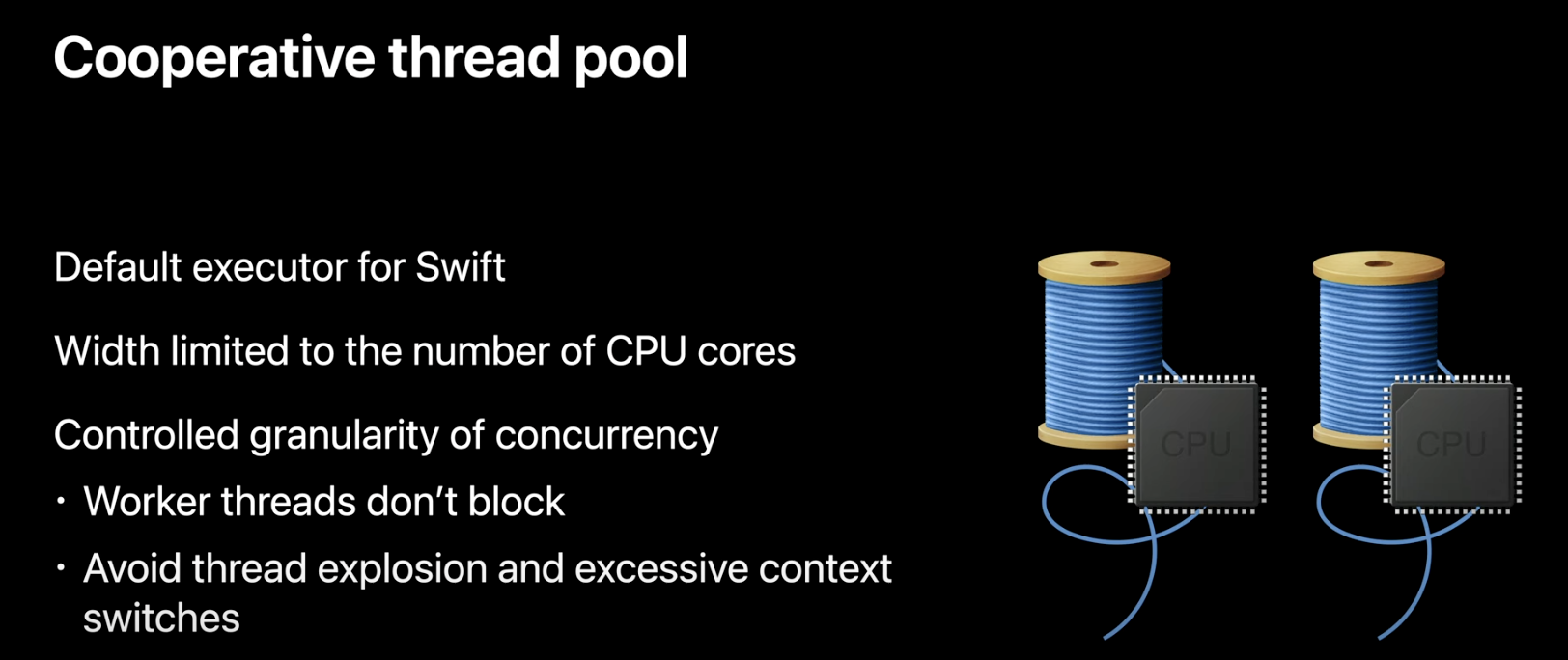 이는 Swift Concurrency를 기본 실행자로 지원하기 위한 새로운 협력 스레드 풀 형태임.