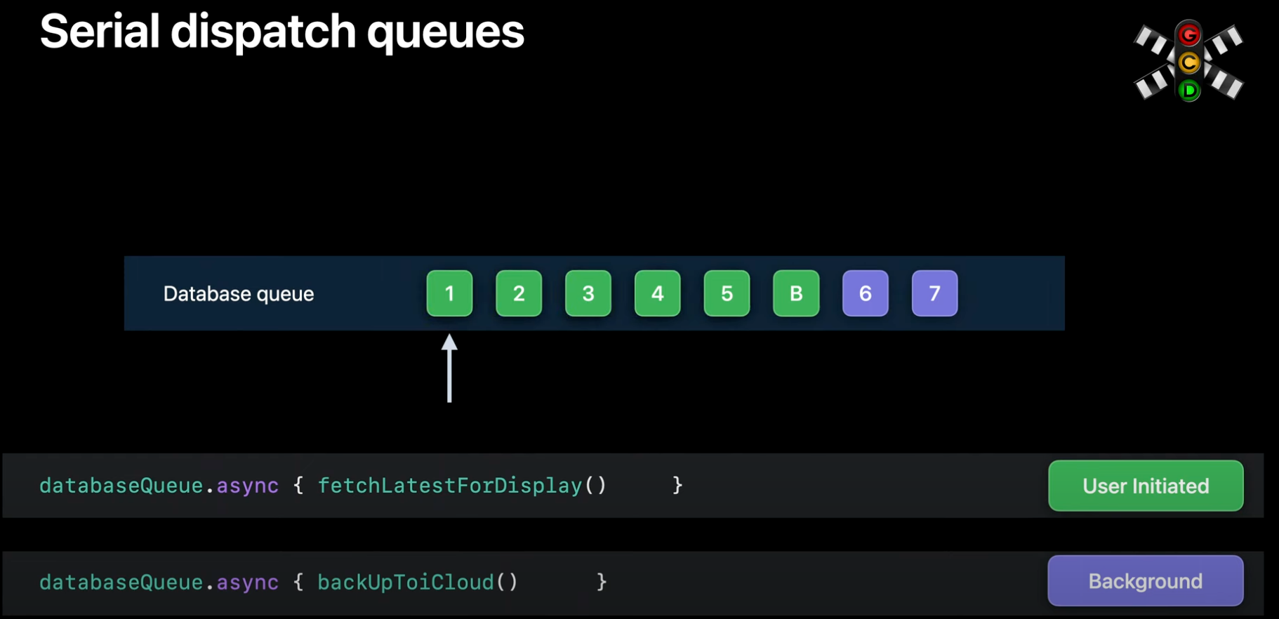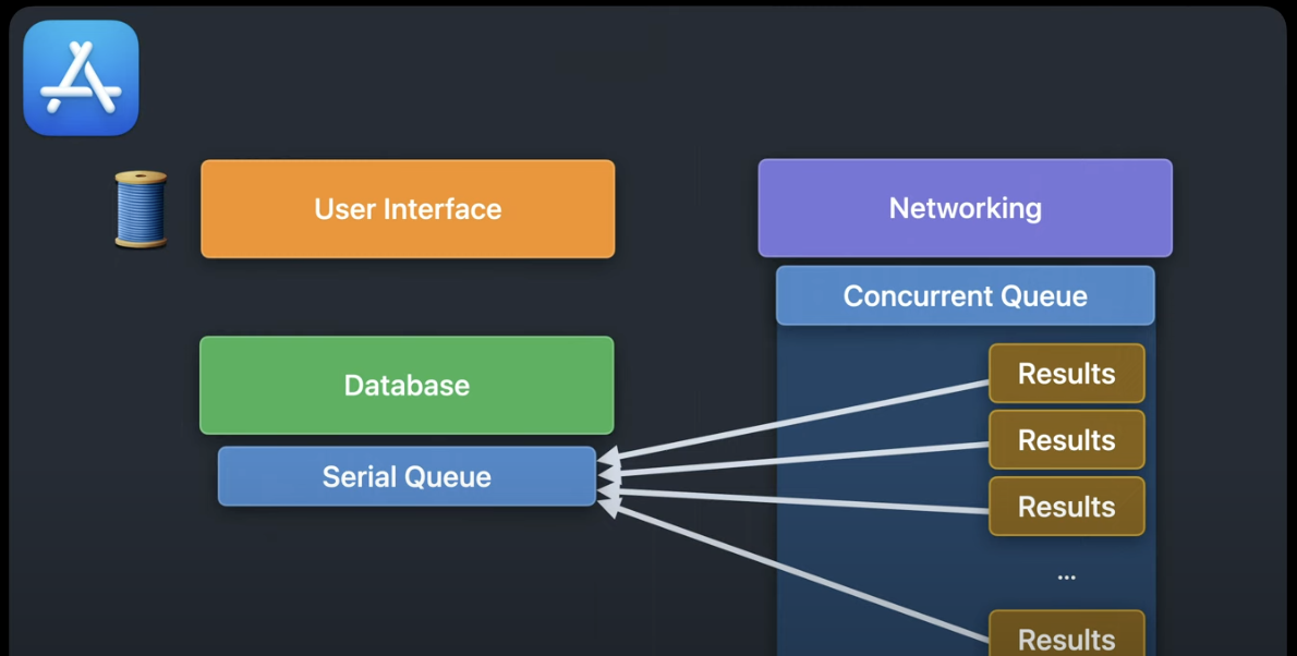 이를 DB의 Serial Queue에 넣을 때 Queue에서 차단되면 GCD는 더 많은 스레드를 가져오므로 앱에 많은 스레드가 생김