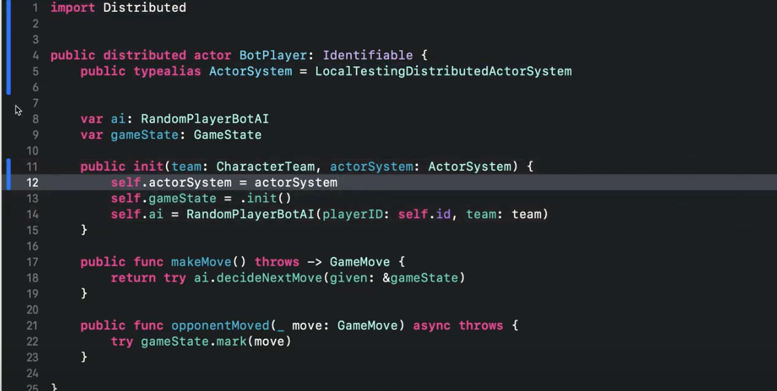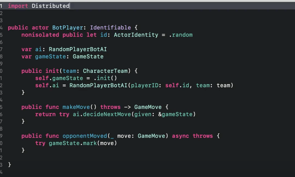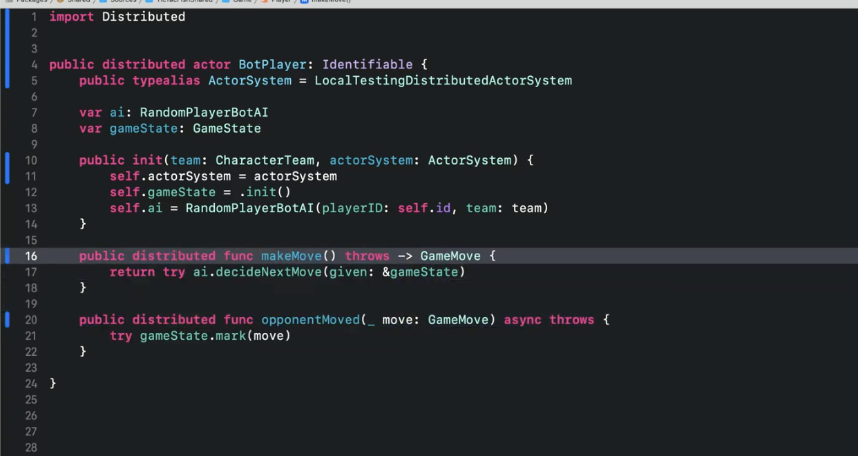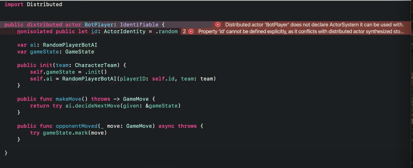 분산 Actor를 선언하려면 Swift 5.7에서 도입된 Distributed를 선언해야 함.