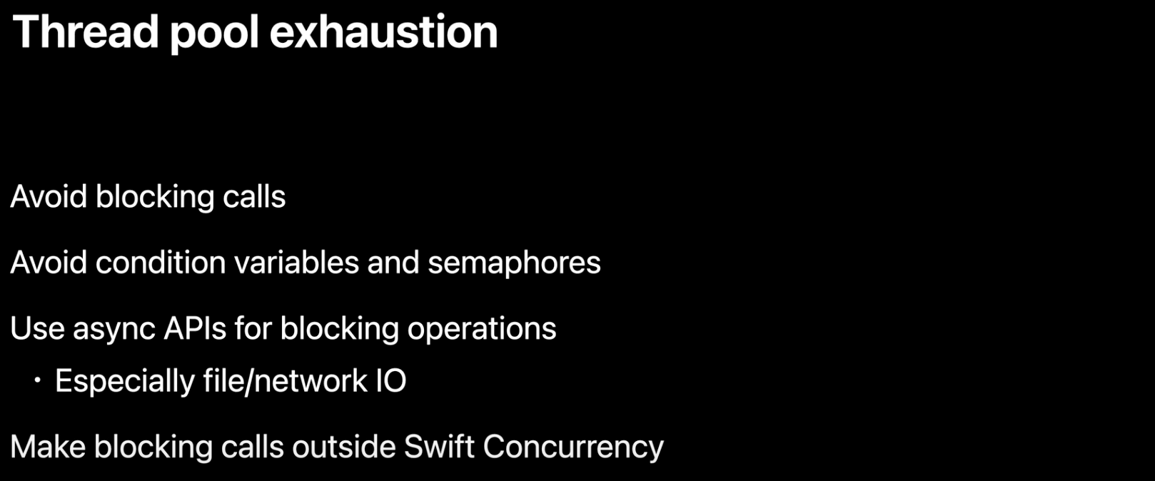 Swift Concurrency를 사용할 때 몇몇 문제는 성능 저하나 버그를 유발하기도 함.
