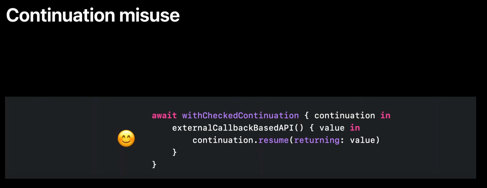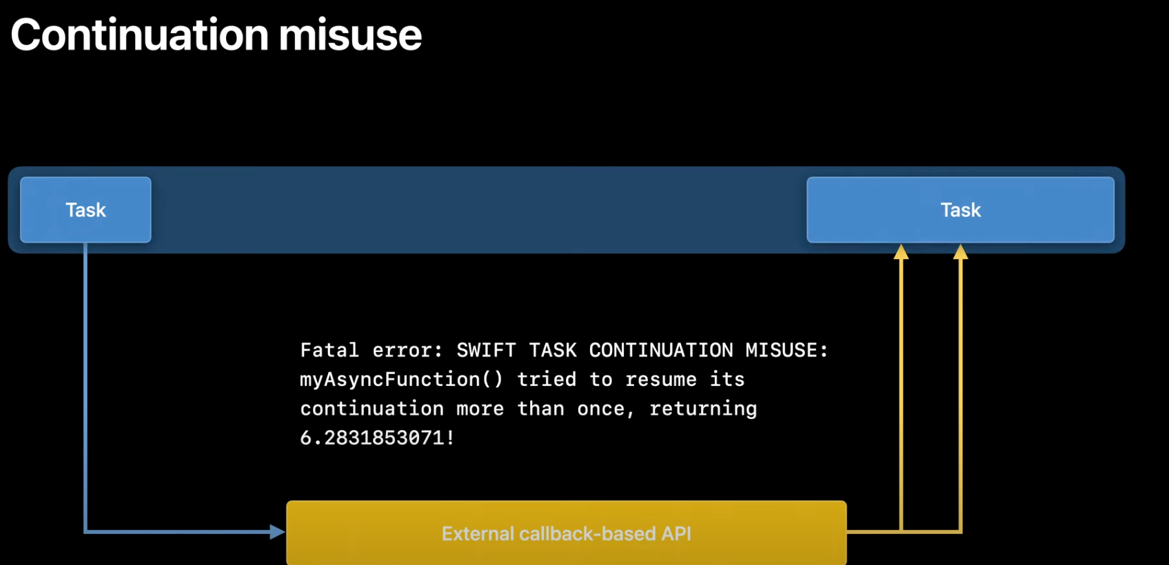 CheckContunuation은 오용을 자동 감지해 오류를 경고로 띄우고