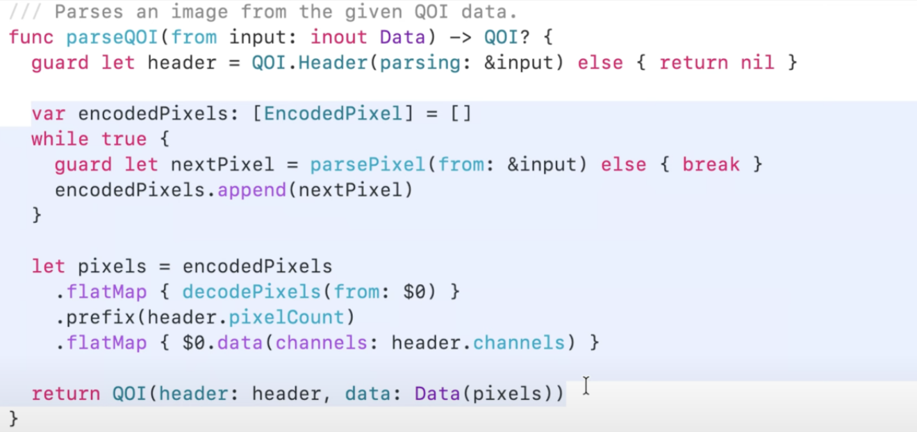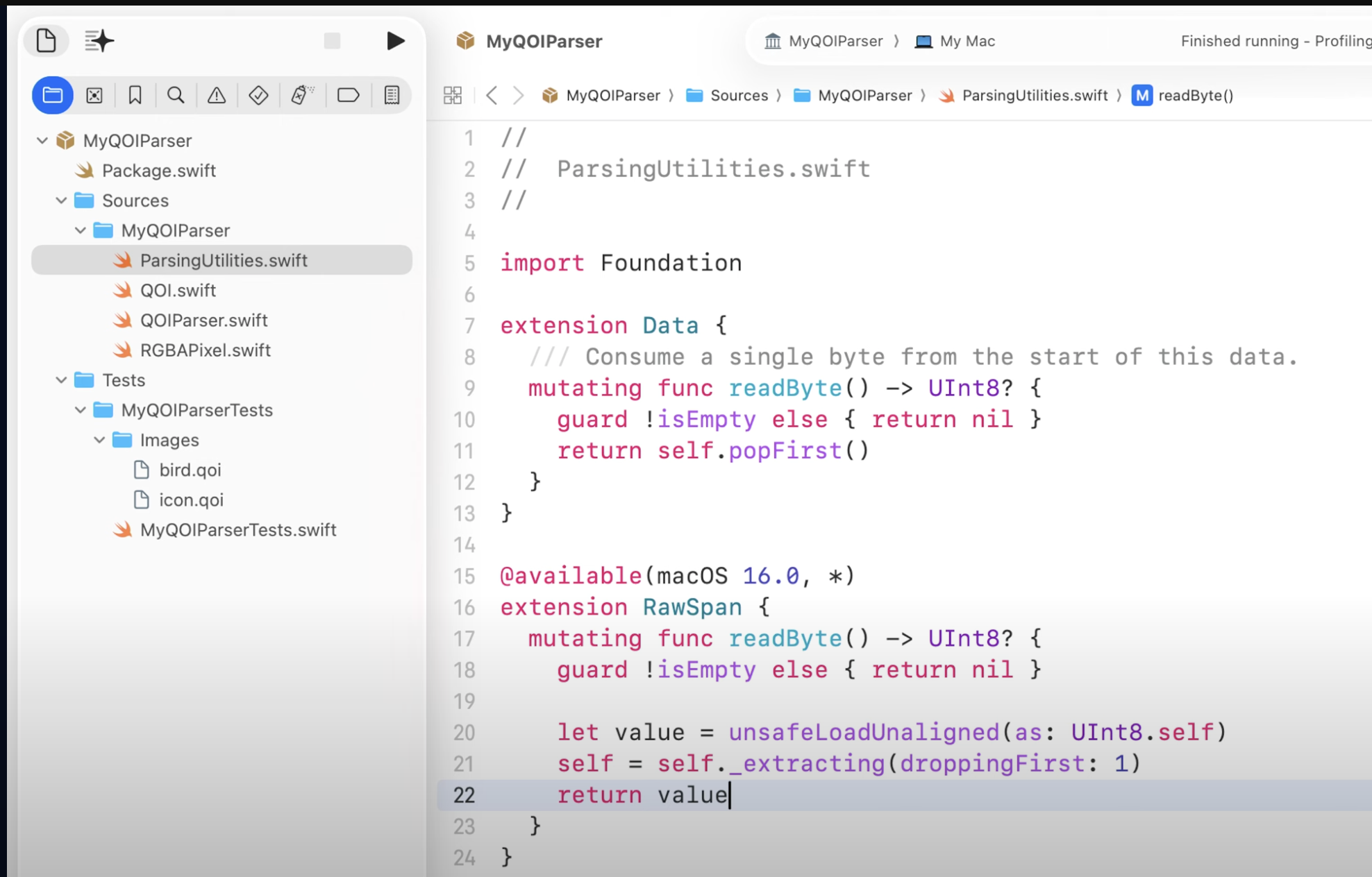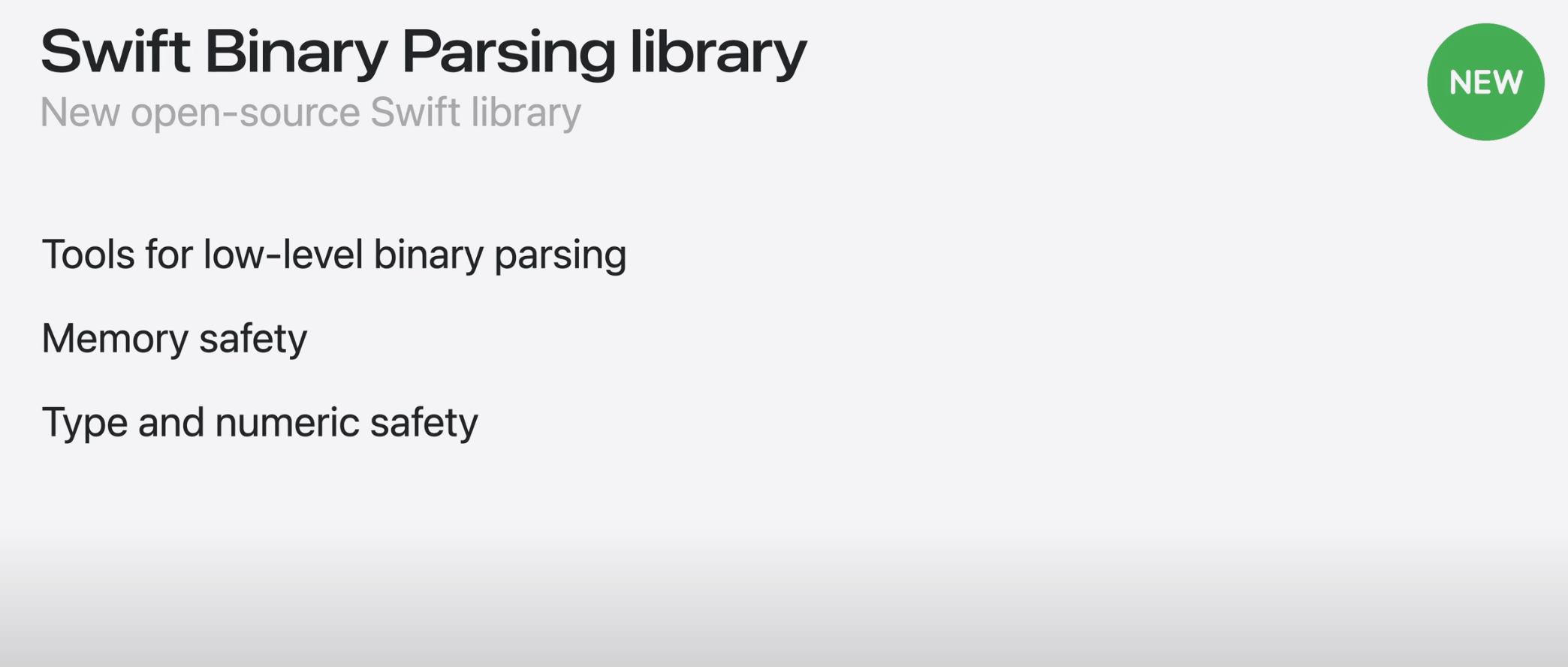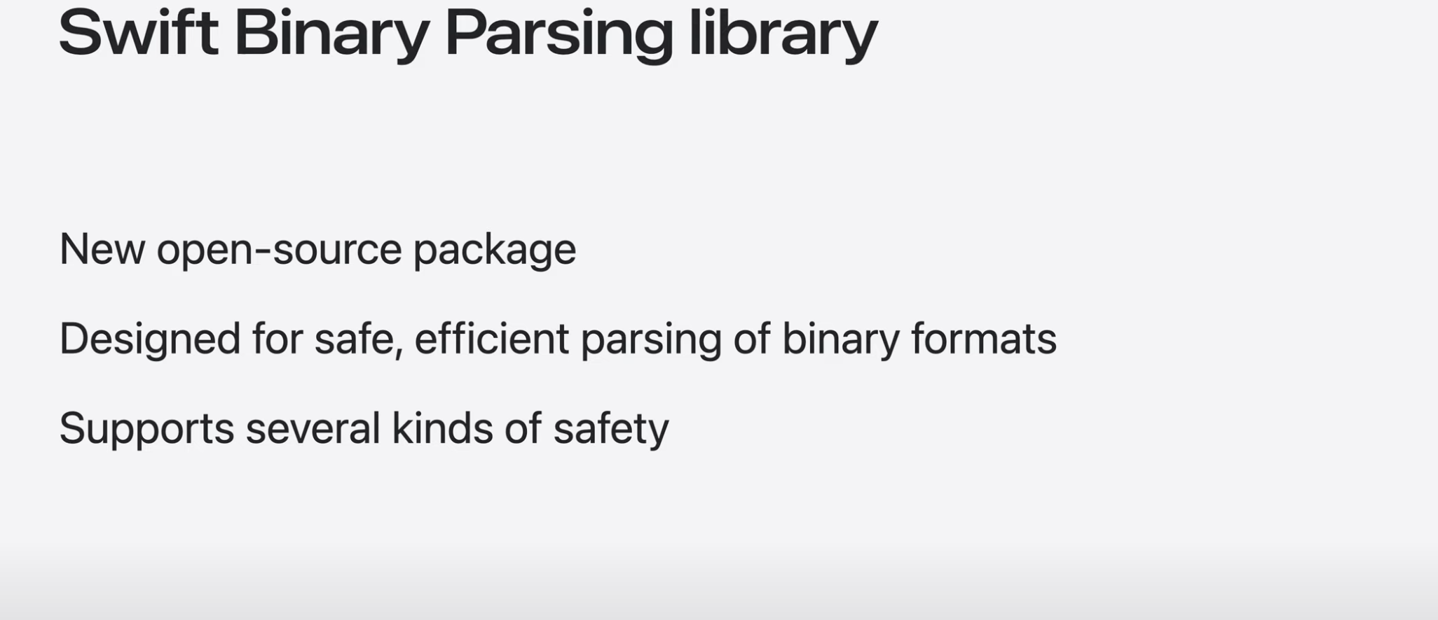 마지막으로 Swift Binary Parsing 라이브러리는 여기 영상에서 제공한 것과 동일한 기능을 기반으로 구축됨.