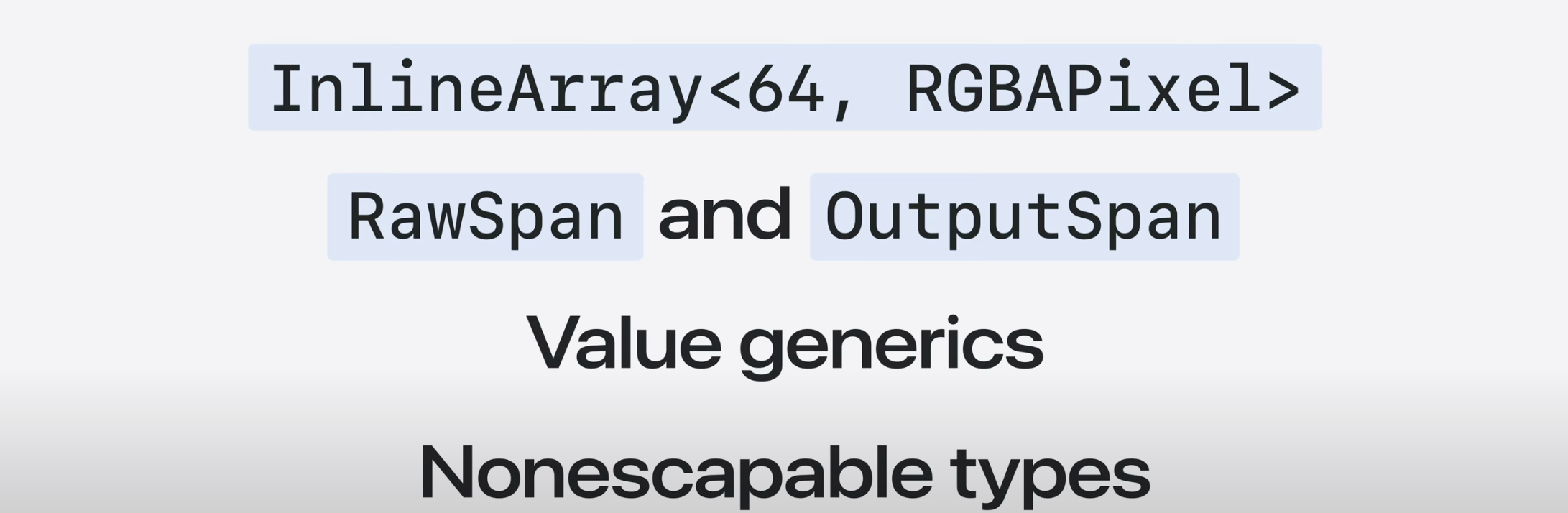 새로운 InlineArray 및 Span 타입을 사용해 제네릭을 알아보고, 탈출할 수 없는 타입에 대해서 알아보고 이러한 타입들을 사용해 보유 및 해제 독점성 및 고유성 검사 기타 추가 작업을 제거할 것.