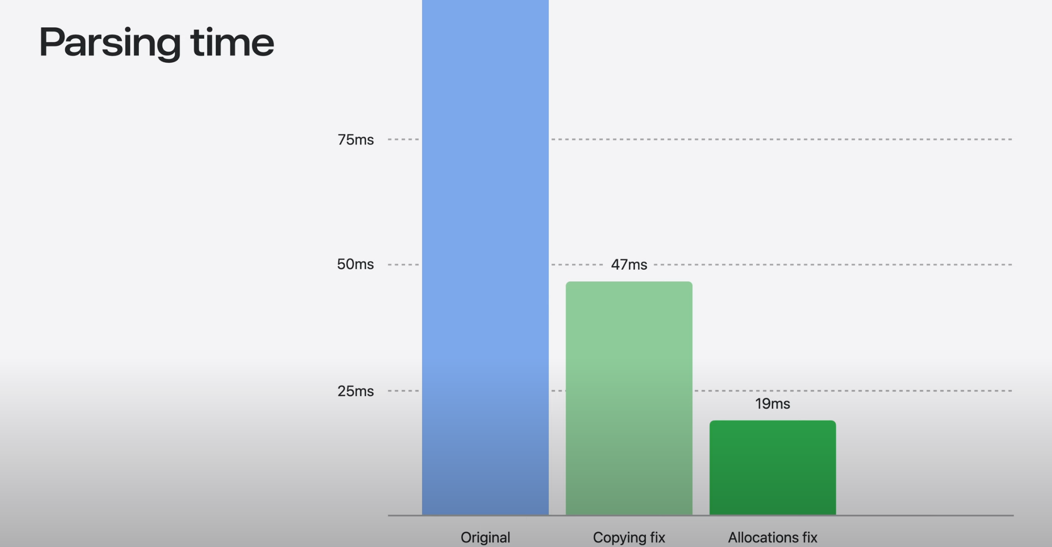 즉, 해당 상황에서는 Parser가 데이터를 읽는 데 시간을 들이지 않고, 데이터를 복사하는데 대부분의 시간을 소비하고 있음을 나타냄.
