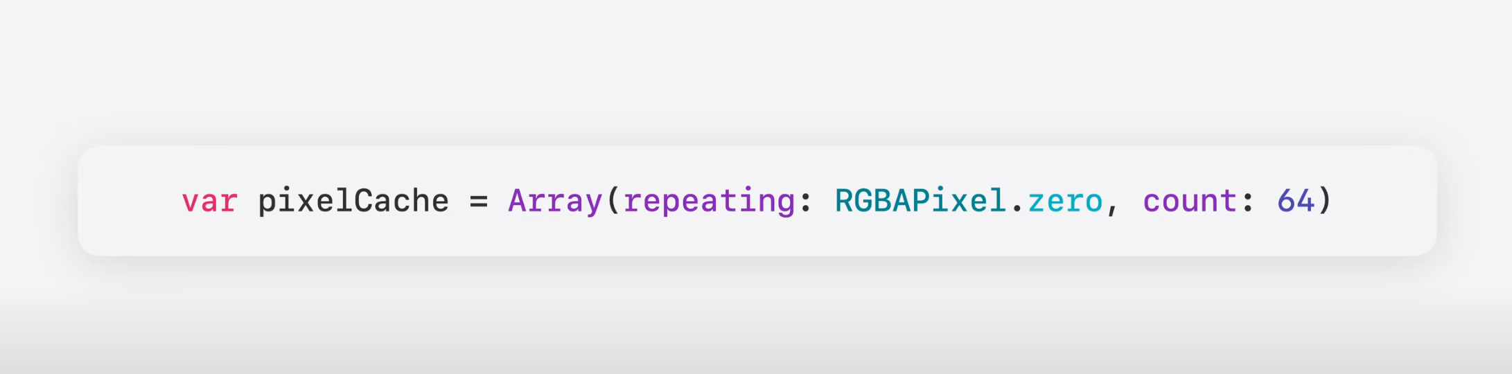 특정 배열의 사이즈가 변경되지 않는 경우 이 캐시는 InlineArray 타입을 사용하기에 좋은 영역임.