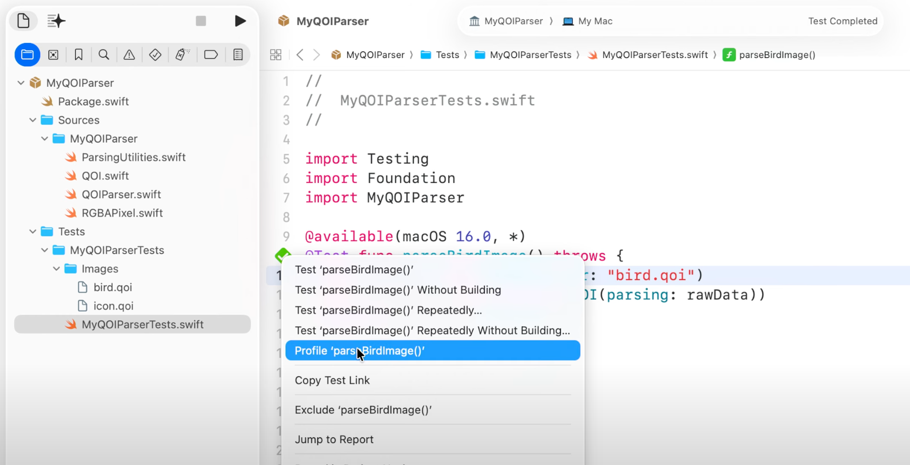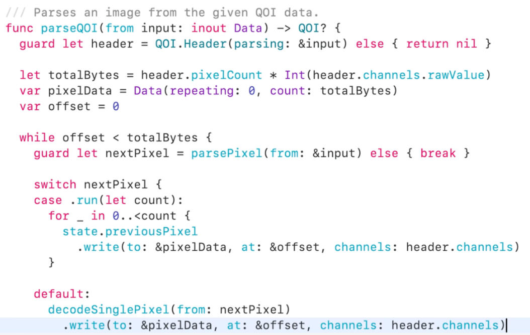 QOI Parser에서 로드 속도가 느린 동일한 새 이미지를 파싱하는 테스트를 작성함.